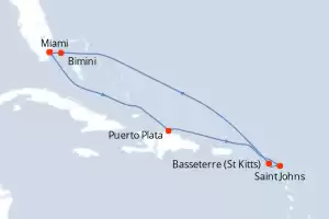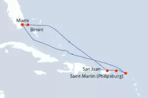Les itinéraires de croisière du Brilliant Lady comprennent des escales dans des destinations fascinantes des Caraïbes et des Antilles. Philipsburg, la capitale de Sint Maarten, est célèbre pour ses plages splendides et son mélange culturel influencé par les traditions néerlandaises et françaises. Tortola, dans les îles Vierges britanniques, connue pour ses paysages montagneux et ses eaux turquoise, ainsi que Basseterre, la capitale de Saint-Christophe-et-Niévès, avec ses plages paradisiaques et son riche patrimoine historique, figurent parmi les escales captivantes que peuvent inclure les itinéraires du Brilliant Lady aux Caraïbes.