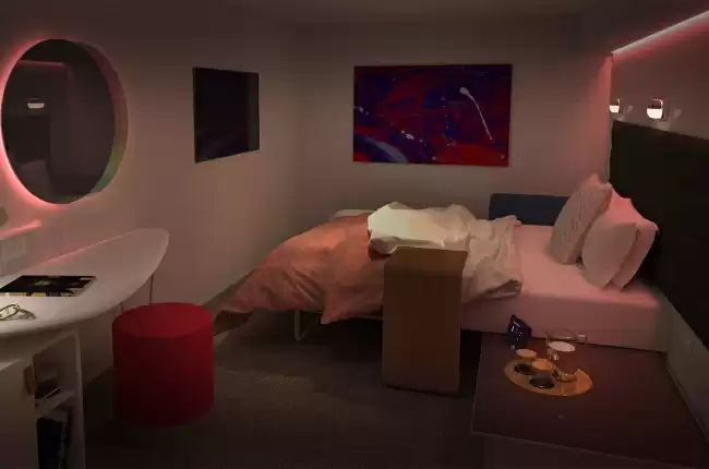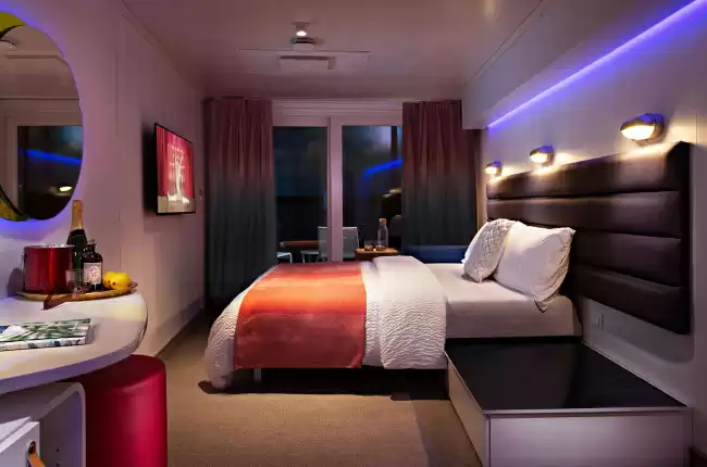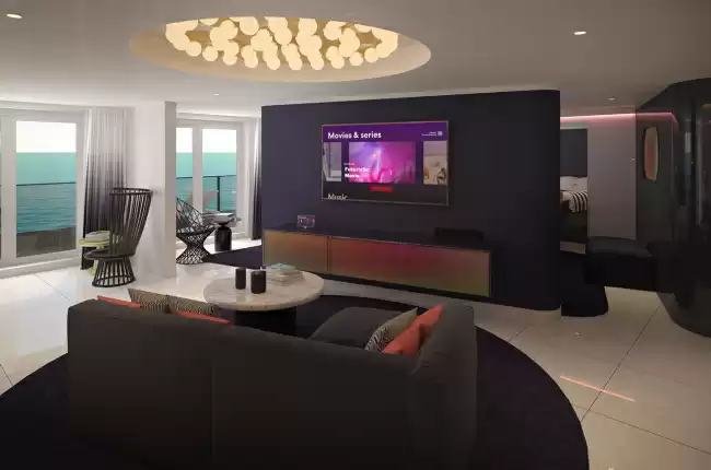 Les suites Rockstar Quarters de Virgin Voyages offrent un confort supérieur et des prestations haut de gamme, notamment des bars personnels, des lits king size européens et des salles de bain en marbre avec des douches Peek-a-Boo. Ces suites incluent également un accès prioritaire aux restaurants et événements ainsi qu'au Richard's Rooftop, un club privé pour les RockStar Sailors.