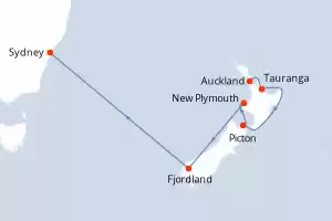 Itinéraire : Auckland, Tauranga, Picton, New Plymouth, Fiordland, Sydney