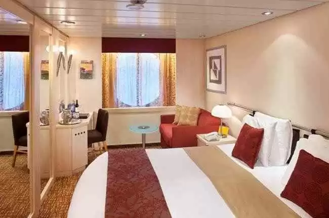Sur ce navire, 80 % des cabines disposent d’une vue mer, et plus de la moitié sont équipées d’une véranda privée. Les cabines classiques ont une superficie de 16 m2 minimum.