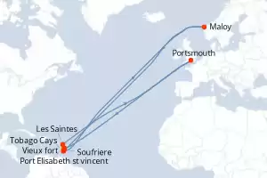 Itinéraire : Vieux fort, Port Elisabeth st vincent, Maloy, Tobago Cays, Pigeon Island Beach, Soufriere, Les Saintes, Portsmouth, Vieux fort