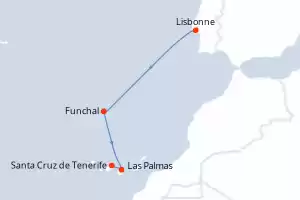 Portugal, Espagne Itinéraire: Lisbonne , Lisbonne , Lisbonne , Lisbonne , Funchal , Funchal , Funchal , Funchal , Funchal , Funchal , Funchal , Funchal , Las Palmas , Las Palmas , Las Palmas , Las Palmas , Santa Cruz de Tenerife , Santa Cruz de Tenerife , Santa Cruz de Tenerife , Santa Cruz de Tenerife Pension Complète Silver Dawn 7 jours Suite Lisbonne 14/11/2025 dès 3041 CHF Boissons incluses Cuisine Gastronomique Service de Majordome inclus Frais de séjour inclus Pension Complète Voir les offres