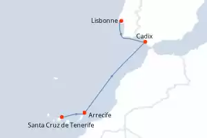 Portugal, Espagne Itinéraire: Lisbonne , Lisbonne , Lisbonne , Lisbonne , Funchal , Funchal , Funchal , Funchal , Funchal , Funchal , Funchal , Funchal , Las Palmas , Las Palmas , Las Palmas , Las Palmas , Santa Cruz de Tenerife , Santa Cruz de Tenerife , Santa Cruz de Tenerife , Santa Cruz de Tenerife , Arrecife , Arrecife , Arrecife , Arrecife , Cadix , Cadix , Cadix , Cadix , Cadix , Cadix , Cadix , Cadix , Lisbonne , Lisbonne , Lisbonne , Lisbonne Pension Complète Silver Dawn 13 jours Suite Lisbonne 14/11/2025 dès 4981 CHF Boissons incluses Cuisine Gastronomique Service de Majordome inclus Frais de séjour inclus Pension Complète Voir les offres