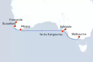 Australie Itinéraire: Fremantle , Fremantle , Fremantle , Fremantle , Bussleton , Bussleton , Bussleton , Bussleton , Albany , Albany , Albany , Albany , Ile du Kangourou , Ile du Kangourou , Ile du Kangourou , Ile du Kangourou , Adelaide , Adelaide , Adelaide , Adelaide , Adelaide , Adelaide , Adelaide , Adelaide , Melbourne , Melbourne , Melbourne , Melbourne Pension Complète Silver Moon 11 jours Suite Fremantle 20/11/2025 dès 3775 CHF Boissons incluses Cuisine Gastronomique Service de Majordome inclus Frais de séjour inclus Pension Complète Voir les offres