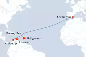 Barbade,Sainte-Lucie,Saint Vincent-et-les-Grenadines,Pays-Bas,Aruba,Colombie,Espagne Itinéraire: Bridgetown , Rodney Bay , Canouan , Kralendijk , Willemstad (Curaçao) , Oranjestad , Oranjestad , Santa Marta , Carthagene Pension Complète Silver shadow 10 jours Suite Bridgetown 22/11/2025 dès 4090 CHF Boissons incluses Cuisine Gastronomique Service de Majordome inclus Frais de séjour inclus Pension Complète Voir les offres