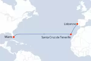 États-Unis, Espagne, Portugal Itinéraire: Lisbonne , Lisbonne , Lisbonne , Lisbonne , Santa Cruz de Tenerife , Santa Cruz de Tenerife , Santa Cruz de Tenerife , Santa Cruz de Tenerife , Miami , Miami , Miami , Miami , Miami , Miami , Miami , Miami Pension Complète Silver Ray 14 jours Suite Lisbonne 28/11/2026 dès 6816 CHF Boissons incluses Cuisine Gastronomique Service de Majordome inclus Frais de séjour inclus Pension Complète Voir les offres