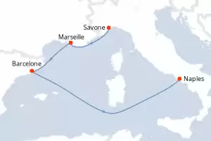 Italie, France, Espagne Itinéraire: Savone , Marseille , Barcelone , Naples Pension Complète Costa Toscana 5 jours Cabine standard Savone 28/11/2025 dès 345 CHF Enfants Gratuits jusqu'à 18 ans Club Enfants dès 3 ans Pension Complète Voir les offres