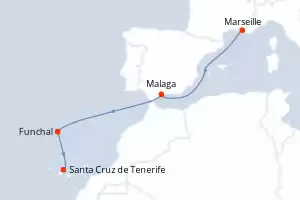 France, Espagne, Madère, Canaries Itinéraire: Marseille , Malaga , Funchal , Santa Cruz de Tenerife Pension Complète Costa Fascinosa 6 jours Cabine standard Marseille 21/11/2025 dès 324 CHF Enfants Gratuits jusqu'à 18 ans Club Enfants dès 3 ans Pension Complète Voir les offres
