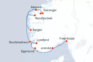 Fjords norvégiens Itinéraire: Fredrikstad , arendal , Eigersund , Lysefjord , Skudeneshavn , Nordfjordeid , Geiranger , Hellesylt , Alesund , Bergen Pension Complète Le Laperouse 8 jours Cabine balcon Fredrikstad 07/06/2027 dès 7057 CHF Luxe Francophone Service Majordome inclus Boissons incluses Gastronomie Ducasse Conseil Pension Complète Voir les offres