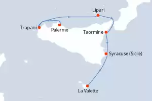 Escapade sicilienne Itinéraire: Palerme , Trapani , Lipari , Taormine , Syracuse (Sicile) , La Valette Pension Complète Le Boreal 6 jours Cabine extérieure Palerme 01/06/2027 dès 3356 CHF Luxe Francophone Service Majordome inclus Boissons incluses Gastronomie Ducasse Conseil Pension Complète Voir les offres
