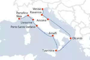 Joyaux des côtes italiennes Itinéraire: Venise , Ravenne , Ancone , Otranto , Taormine , Amalfi , Porto Santo Stefano , Livourne , Portofino , Nice Pension Complète Le Bougainville 11 jours Cabine balcon Venise 11/06/2027 dès 7372 CHF Luxe Francophone Service Majordome inclus Boissons incluses Gastronomie Ducasse Conseil Pension Complète Voir les offres