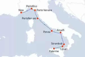 De la Riviera ligure à la Sicile, sous les voiles du Ponant Itinéraire: Nice , Portofino , Porto Venere , Portoferraio , Ponza , Amalfi , Stromboli , Lipari , Palerme Pension Complète Le Ponant 8 jours Cabine extérieure Nice 01/06/2027 dès 8640 CHF Luxe Francophone Service Majordome inclus Boissons incluses Gastronomie Ducasse Conseil Pension Complète Voir les offres