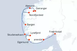 Fjords norvégiens Itinéraire: Fredrikstad , arendal , Eigersund , Lysefjord , Skudeneshavn , Nordfjordeid , Geiranger , Hellesylt , Alesund , Bergen Pension Complète Le Champlain 8 jours Cabine balcon Fredrikstad 20/08/2027 dès 6218 CHF Luxe Francophone Service Majordome inclus Boissons incluses Gastronomie Ducasse Conseil Pension Complète Autres départs : 12 juil. 27 Voir les offres