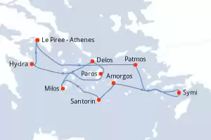 Au c½ur des îles grecques Itinéraire: Le Piree - Athenes , Patmos , Symi , Amorgos , Santorin , Milos , Delos , Paros , Hydra , Le Piree - Athenes Pension Complète Le Laperouse 8 jours Cabine balcon Le Piree - Athenes 25/08/2027 dès 4561 CHF Luxe Francophone Service Majordome inclus Boissons incluses Gastronomie Ducasse Conseil Pension Complète Voir les offres