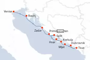 Merveilles naturelles et joyaux culturels de Dalmatie Itinéraire: Venise , Rovinj , Zadar , Primošten , Split , Hvar , Korkula , Mljet , Tivat , Dubrovnik Pension Complète Le Bougainville 8 jours Cabine balcon Venise 06/08/2026 dès 5327 CHF Luxe Francophone Service Majordome inclus Boissons incluses Gastronomie Ducasse Conseil Pension Complète Autres départs : 20 aout 26 Voir les offres
