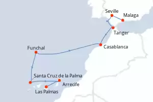 Odyssée atlantique de la péninsule ibérique aux Canaries Itinéraire: Malaga , Seville , Seville , Tanger , Casablanca , Funchal , Funchal , Santa Cruz de la Palma , Arrecife , Las Palmas Pension Complète Le Boreal 11 jours Cabine extérieure Malaga 13/10/2027 dès 5054 CHF Luxe Francophone Service Majordome inclus Boissons incluses Gastronomie Ducasse Conseil Pension Complète Voir les offres