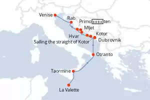 De Malte aux rives de l'Adriatique Itinéraire: La Valette , Taormine , Otranto , Kotor , Sailing the straight of Kotor , Mljet , Dubrovnik , Hvar , Primošten , Split , Rab , Venise Pension Complète Le Bougainville 9 jours Cabine balcon La Valette 19/08/2027 dès 5212 CHF Luxe Francophone Service Majordome inclus Boissons incluses Gastronomie Ducasse Conseil Pension Complète Voir les offres