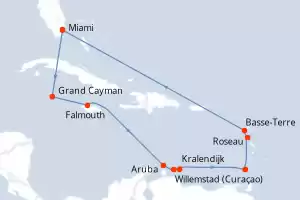 États-Unis, France, Dominique, Grenade, Pays-Bas, Jamaïque, Caïmans (Îles) Itinéraire: Miami , Grand Cayman , Falmouth , Aruba , Willemstad (Curaçao) , Kralendijk , Saint George (Grenade) , Roseau , Basse-Terre , Miami Pension Complète Oceania Vista 15 jours Cabine balcon Miami 11/11/2026 dès 5273 CHF Jusqu'à 50% de remise Tous les restaurants inclus Boissons sans alcool illimitées Pourboires inclus Wi-Fi illimité inclus Crédit excursion offert OU Forfait boissons offert Pension Complète Voir les offres