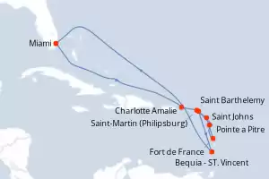 France, Antigua-et-Barbuda, États-Unis, Pays-Bas, Royaume-Uni, Saint Vincent-et-les-Grenadines Itinéraire: Miami , Charlotte Amalie , Saint-Martin (Philipsburg) , Saint Johns , Fort de France , Pointe a Pitre , Saint Barthelemy , Bequia - ST. Vincent , Miami Pension Complète Oceania Vista 13 jours Cabine balcon Miami 25/11/2026 dès 4602 CHF Jusqu'à 50% de remise Tous les restaurants inclus Boissons sans alcool illimitées Pourboires inclus Wi-Fi illimité inclus Crédit excursion offert OU Forfait boissons offert Pension Complète Voir les offres