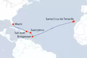 États-Unis, Porto Rico, Antigua-et-Barbuda, Barbade, Espagne Itinéraire: Santa Cruz de Tenerife , San Sebastian de la gomera , Bridgetown , Saint Johns , San Juan , Miami Pension Complète Oceania Marina 13 jours Cabine balcon Santa Cruz de Tenerife 17/11/2025 dès 3449 CHF Tous les restaurants inclus Boissons sans alcool illimitées Pourboires inclus Wi-Fi illimité inclus Crédit excursion offert OU Forfait boissons offert Pension Complète Voir les offres