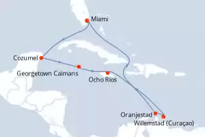 États-Unis, Mexique, Caïmans (Îles), Jamaïque, Aruba Itinéraire: Miami , Willemstad (Curaçao) , Oranjestad , Ocho Rios , Georgetown , Cozumel , Miami Pension Complète MSC Poesia 11 jours Cabine standard Miami 14/01/2027 dès 838 CHF Internet à bord Clubs Enfants dès 3 ans Enfants Gratuits jusqu'à 12 ans Pension Complète Voir les offres