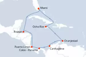 Jamaïque, États-Unis, Honduras, Costa Rica, Panama, Colombie, Aruba Itinéraire: Miami , Ocho Rios , Oranjestad , Carthagene CO , Colón - Panama , Puerto Limon , Roatan , Miami Pension Complète MSC Divina 12 jours Cabine standard Miami 07/12/2025 dès 515 CHF + dès 2151 CHF Internet à bord Clubs Enfants dès 3 ans Enfants Gratuits jusqu'à 12 ans Pension Complète Voir les offres