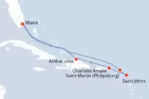 Pays-Bas, États-Unis, Royaume-Uni, République Dominicaine Itinéraire: Miami , Saint-Martin (Philipsburg) , Basseterre (St Kitts) , Charlotte Amalie , Amber cove , Miami Pension Complète MSC Meraviglia 9 jours Cabine standard Miami 02/01/2027 dès 548 CHF Internet à bord Clubs Enfants dès 3 ans Enfants Gratuits jusqu'à 12 ans Pension Complète Autres départs : 21 nov. 26 19 déc. 26 13 fév. 27 Autres départs Voir les offres