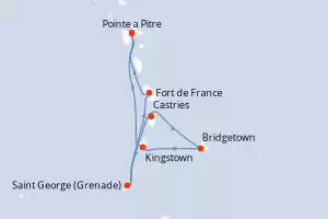 France, Grenade, Sainte-Lucie, Barbade, Saint Vincent-et-les-Grenadines Itinéraire: Pointe a Pitre , Kingstown , Bridgetown , Castries , Saint George (Grenade) , Fort de France , Pointe a Pitre Pension Complète MSC Virtuosa 8 jours Cabine standard Pointe a Pitre 07/12/2025 dès 903 CHF Internet à bord Clubs Enfants dès 3 ans Enfants Gratuits jusqu'à 12 ans Pension Complète Autres ports d'embarquement : Fort de France Voir les offres