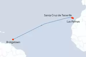 Transatlantique Ouest Itinéraire: Las Palmas , Santa Cruz de Tenerife , Bridgetown Pension Complète Star Clipper 16 jours Cabine standard Las Palmas 20/11/2026 dès 3015 CHF Jusqu'à 20% de remise Restauration raffinée Activités & Animation à bord Navigation à la voile Pension Complète Voir les offres