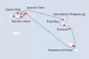 Îles au Trésor Itinéraire: Saint-Martin (Philipsburg) , Road Bay , Jost Van Dyke , Sopers Hole , Canal de St. Francis Drake , Norman Island , Spanish Town , Iles Vierges , Basseterre (St Kitts) , South Friar's - plage , Gustavia , Saint-Martin (Philipsburg) Pension Complète Star Flyer 8 jours Cabine standard Saint-Martin (Philipsburg) 28/11/2026 dès 2548 CHF Jusqu'à 20% de remise Restauration raffinée Activités & Animation à bord Navigation à la voile Pension Complète Autres départs : 6 déc. 25 Voir les offres