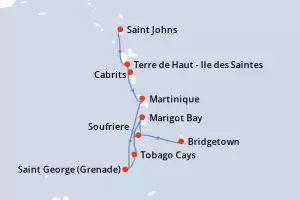 Yachtsman classique des Caraïbes Itinéraire: Saint Johns , Terre de Haut - Ile des Saintes , Cabrits , Martinique , Saint George (Grenade) , Tobago Cays , Marigot Bay , Soufriere , Bridgetown Pension Complète Royal Clipper 8 jours Cabine standard Saint Johns 29/11/2025 dès 2705 CHF Restauration raffinée Activités & Animation à bord Navigation à la voile Pension Complète Autres départs : 28 nov. 26 Voir les offres