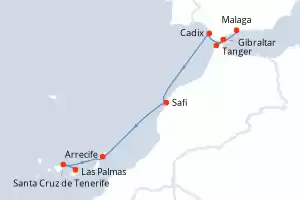 Maroc & Îles Canaries Itinéraire: Malaga , Tanger , Gibraltar , Cadix , Safi , Arrecife , Santa Cruz de Tenerife , Las Palmas Pension Complète Star Flyer 10 jours Cabine standard Malaga 04/11/2026 dès 3392 CHF Jusqu'à 20% de remise Restauration raffinée Activités & Animation à bord Navigation à la voile Pension Complète Voir les offres